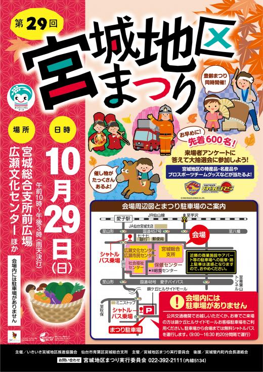 宮城地区まつり 気になるイベントをシェア Share on X (Twitter) Share on Facebook Share on Email Share on SMS[browser-shot width=”300″ url=”http://www.city.sendai.jp/aoba-shinko/event/chikumatsuri29.html”] 公式サイト:日程:2017年10月29(日)宮城地区まつり時間:10:00-15:00場所:宮城総合支所駐車場、広瀬文化センターほか 主催:いきいき宮城地区推進協議会,仙台市青葉区宮城総合支所カテゴリー: 気になるイベントをシェア Share on X (Twitter) Share on Facebook Share on Email Share on SMS